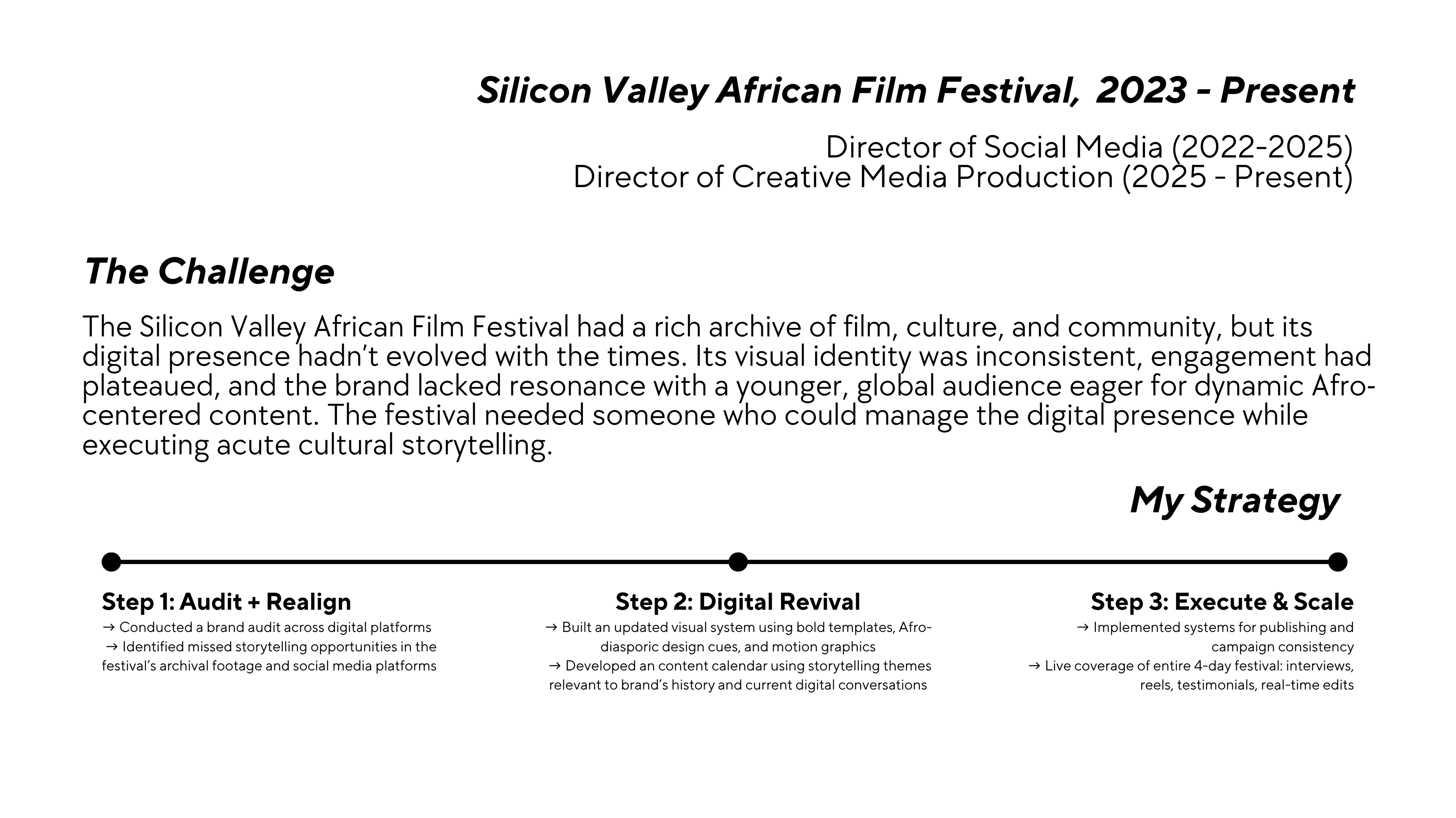 Through the grace of God, I was able to transform a fading digital presence into a living archive of culture which was driven by research, sustained by design, and made to inspire the next generation of African creatives.